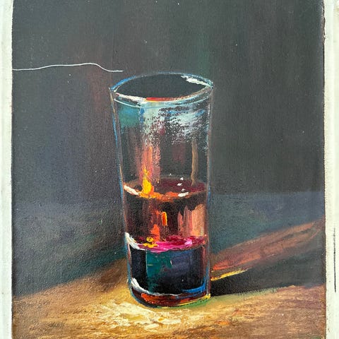 Vinflaska & frukt | Oljemålning , 30*40 | impasto & palettkniv