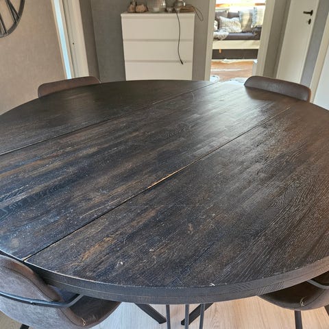 Bordet är mörkbetsat, men kan slipas måånga gånger.