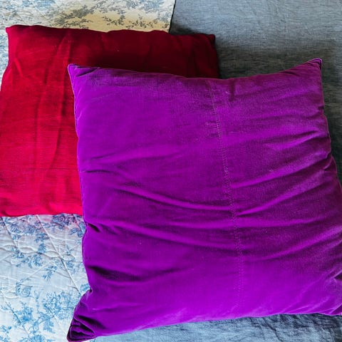 Två dekorativa prydnadskuddar i genuin indisk stil, inköpta i Indien.