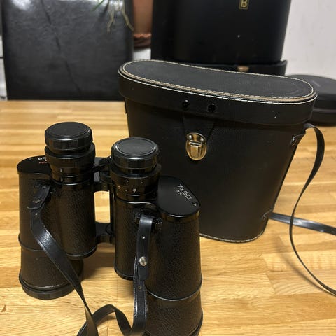Magnific Deluxe 7x50 kikare, som är ett samlarobjekt snarare än en modern teknisk produkt. Förstoring: 7x med en linsdiameter på 50 mm. Funktioner: Utrustade med antireflexbehandling ("Antireflex") och har ett synfält på \(7,1^{\circ }\).