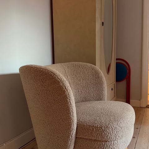 Grön fåtölj i ”teddy” liknande material