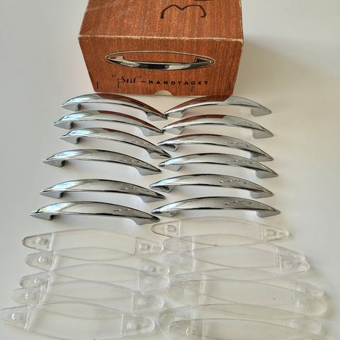 21 st retro förkromade skåphandtag c/c 86 mm ,14 st av märket Stil 555, 7 st av märket Strong
