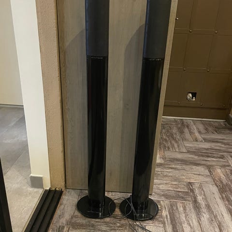 Harman Kardon golvhögtalare i svart utförande. Två fristående högtalare i pelardesign, lämpliga för användning tillsammans med hemmabioanläggning eller stereo. Passar för placering på golv i vardagsrum eller liknande miljöer där man önskar stereoljud från separata högtalare.
