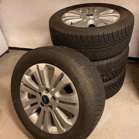 Continental Viking contact 7 med 5-7 mm mönsterdjup på Ford originalfälg. Har suttit på en Ford Focus 2015.