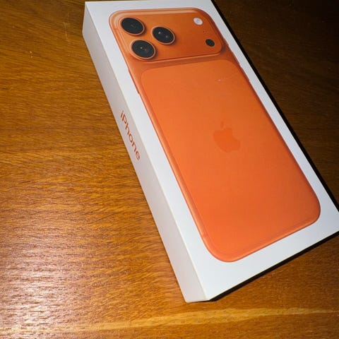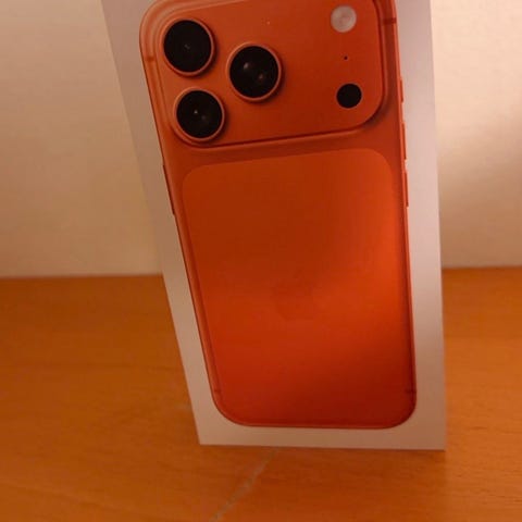 Apple iPhone 17 Pro Max smartphone med 256 GB intern lagring. Modellen visas här i orange färg.