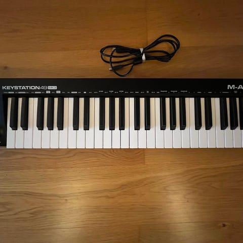 M-Audio Ozone MIDI-klaviatur med 25 tangenter. Utrustad med inbyggd display, reglar, rattar och knappar för styrning av olika parametrar i musikprogram. Passar för musikproduktion, inspelning och styrning av mjukvaruinstrument via dator.