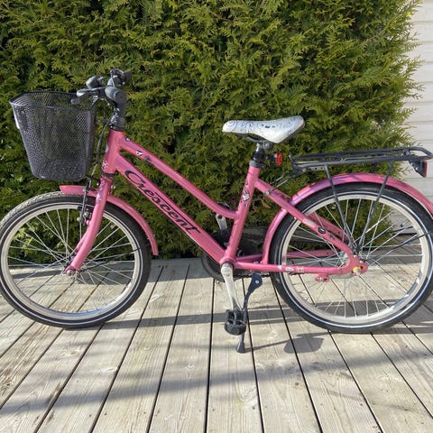 Saga barncykel med 20" hjul i lila färg. Cykeln har lågt insteg, pakethållare bak och korg framtill. Utrustad med navväxel med 3 växlar som manövreras via vridreglage på styret. Cykeln har fotbroms bak och handbroms fram. Reflexer finns bak och på hjulen. Passar barn som behöver en cykel i 20"-storlek för vardagscykling och fritidsbruk.
