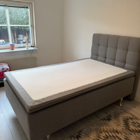 Ljusgrå Höie säng 200 x 120, obetydligt använd, toppskick