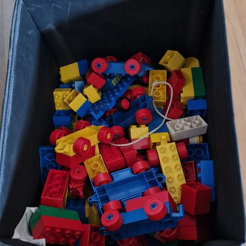 Lego blandade klossar i förvaringslåda