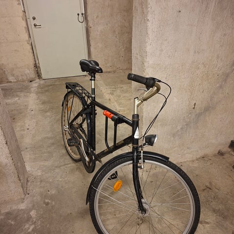 Mycket bra skick, allt fungerar som det ska och ingenting är slitet. Utrustad med 7 st navväxlar, fotbroms bak, handbroms fram, ramlås, korg, helteckande skärmar, kedjeskydd, sidostöd mm.
