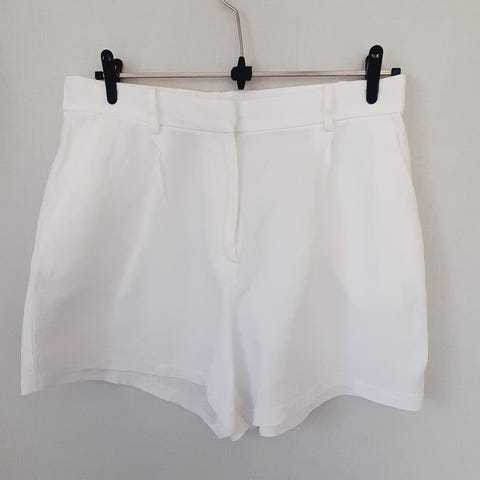Vit kort bomullskjol från Newhouse m infällda fickor fram och dragkedja bak i linning, längd 55 cm, linning/midja 96 cm, stl 44.