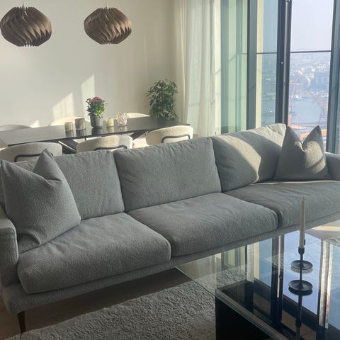 Soffan är i fint skick och har använts i ett rök-och djurfritt hem. Tyget går att ta av och tvätta.