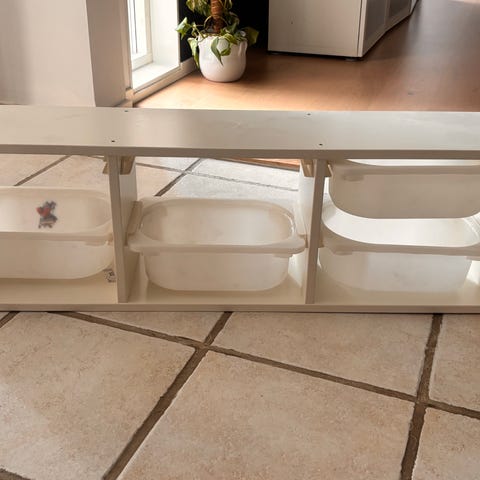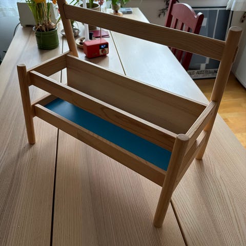 IKEA klädhängare för barn i fristående modell. Stomme i vitt med flera krokar i olika färger placerade i olika höjder anpassade för barn. Passar för upphängning av ytterkläder, väskor och accessoarer i barnrum eller hall.