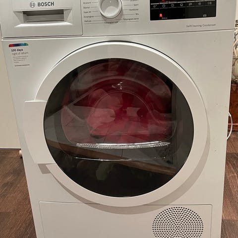 Bosch Serie 8 kondenstorktumlare i vit färg. Frontmatad modell med stor glaslucka och rostfri trumma. Utrustad med digital display och programväljare med flera torkprogram för olika textiltyper. Självrengörande kondensor (SelfCleaning Condenser) enligt märkning på panelen. Avsedd för användning i hushåll, placeras fristående eller bredvid tvättmaskin i tvättstuga eller badrum där eluttag finns tillgängligt.