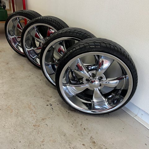 Säljer en uppsättning 24 tum KMC KM665 Surge kromfälgar med Landsail Atrezzo SVR LX sommardäck.