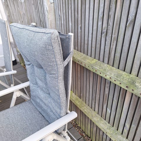 2 st dynor i grönt (125kr) och 2 st dynor i blått (150kr). Ena dynan har mönstrat grönt tyg och den andra är enfärgat blå med vit kant. Dynorna är avsedda för stolar med hög rygg och fästs med band. Hämtas centralt i Örebro