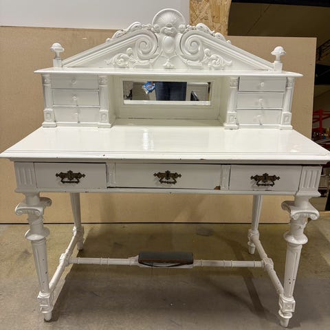 Fint litet antikt skrivbord i bra skick. Linoljemålat och vaxat med möbelvax. Handzinkad låda.