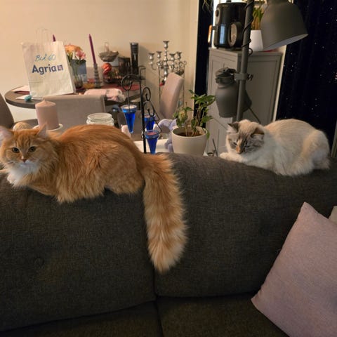 Mamman och pappan är hemma hos mig. Båda 2 är semi. Pappan har drag av Norsk skogskatt. Dem är innekatter har aldrig gått ut förut.