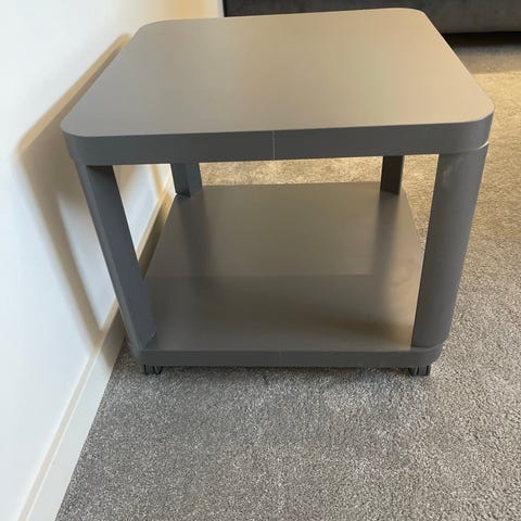 Grått Tingby sidobord på hjul säljes. Då jag har bytt upp mig till en större lösning för sidobord finns nu detta till salu. Perfekt för ex.vis ett barnrum. Inga synliga skador finns.