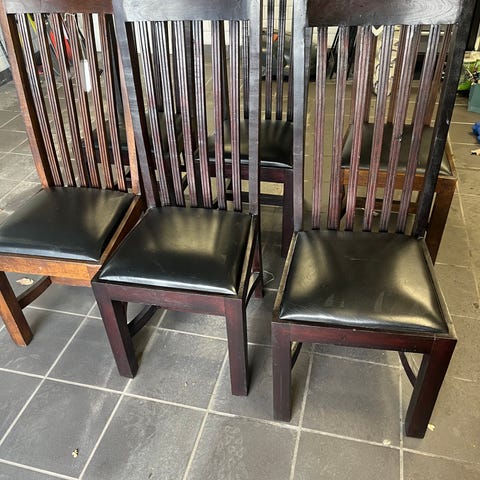 Säljer mina köksstolar pga flytt. 6 st fina stolar trä, gedigna och otroligt stabila. Något repiga men annars fint skick. 1190 för alla.