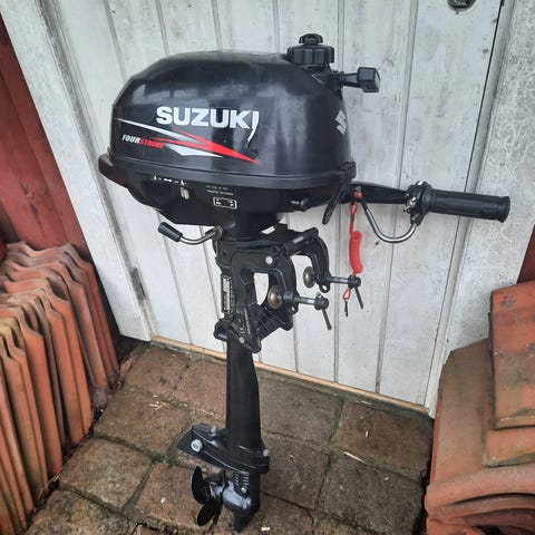 Utombordsmotorn är en fyrtaktsmotor med manuell reglagearm/tiller. Motorn är avsedd för montering på mindre båtar och används för fritidskörning och transport på vatten. Konstruktionen inkluderar bränsleanslutning, reglage för växellägen (fram, neutral, back) samt tilt-/trimsystem för anpassning av motorns vinkel mot vattnet.