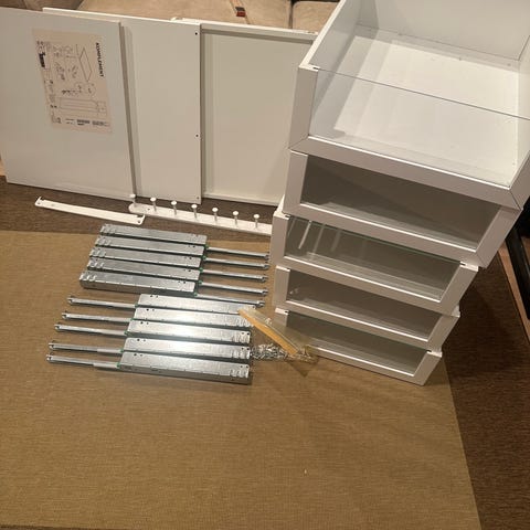 Vi har skåp, lite lådor, dörr och tillbehör över.