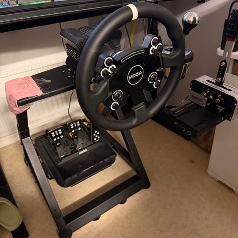 Säljer min simracing rig då jag tappat intresset och behöver pengar till annat. Allt köptes på Moza's hemsida i Augusti förra året helt nytt.