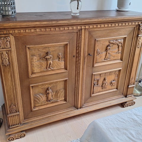 Vackert ekskåp från 1930-talet med snidad dekor