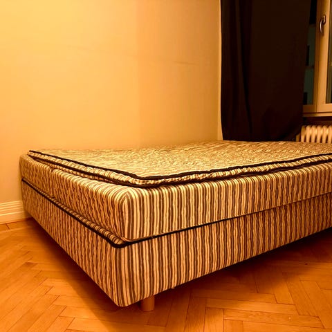 Inkl bäddmadrass, sängbotten och madrass. Fast fjädring