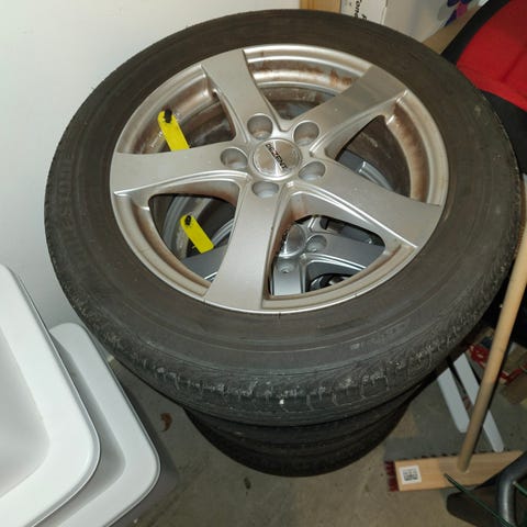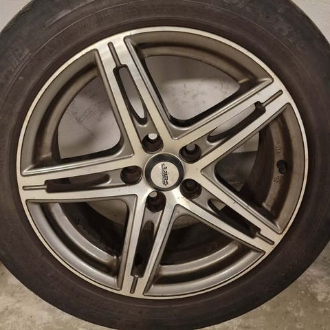 4 st original fälgarna i aliminium till Cheva Orlando . Har suttit på en 2013 års modell. Fälgarna har slitna/ dåliga sommardäck med storlek 215 x 55, 17 tum.
