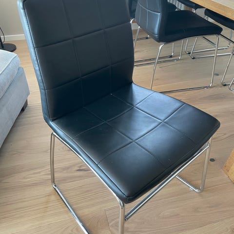 Stol i fint skick i läder från IKEA, modell: Bernhard. Passar som matbordsstol/skrivbordsstol/kontorsstol m m.