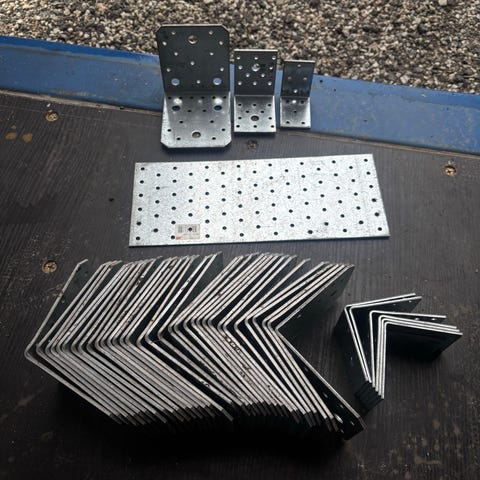 Simpson Strong-Tie stolpsko i galvaniserat stål. Justerbar modell med slitsade hål för infästning och bult för höjdjustering. Avsedd för montering av stolpar och reglar mot betong eller annat underlag där stolpen behöver komma upp från marknivå. Levereras som flera likadana beslag enligt bilderna.