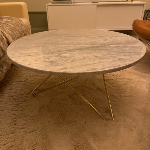 Soffbord i marmor, lite kantstött på vissa ställen men inget man lägger märke till.