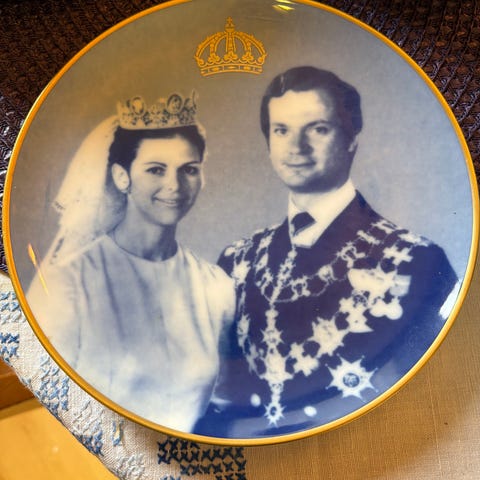 Porslinstallrikar med blåvitt motiv och texten "Mors Dag 1971-2000" resp "Fars Dag 1971-1987". Tallrikarna har dekorativ bård runt kanten och centrala motiv Passar som samlarobjekt eller väggprydnad. Säljes 100kr/st
