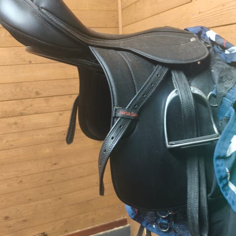 Säljer en podium distanssadel. Blev inte använd hos oss, men ni kan ändå se hur den ligger på våran något runda arab.