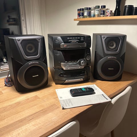 Panasonic SB-AK17 högtalarsystem i svart utförande. Modellen är märkt som SB-AK17 och är avsedd att användas som del av ett stereo- eller ljudsystem. Enligt märkningen har högtalarna en total impedans på 6 ohm och en total ingångseffekt på 100 W (music). Systemet är tillverkat i Spanien av Matsushita Electric España S.A. Passar för anslutning till kompatibla förstärkare eller stereosystem med motsvarande specifikationer.