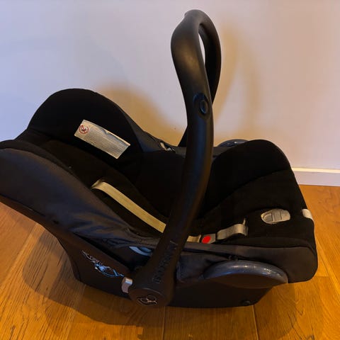 Babyskydd Britax Römer Baby-Safe med svart klädsel och solsufflett. Placeras bakåtvänt i bilen och passar från nyfödd upp till 13 kg. Kan fästas både med bälte och medföljande bas. Lätt och kompakt modell med fempunktsbälte som kan justeras i olika lägen. Mjuk vaddering och borttagbar sätesinsats för nyfödda. Borttagbar klädsel som kan tvättas i maskin. Justerbart handtag som kan flyttas helt bakåt så babyskyddet hålls stabilt på golvet. Kan även användas som babyskydd på flyg. Click-and-go-adaptrar till barnvagn medföljer*. Inköpt nov -21. Givetvis okrockad. Använd till ett barn och i mycket fint skick utan tecken på slitage.