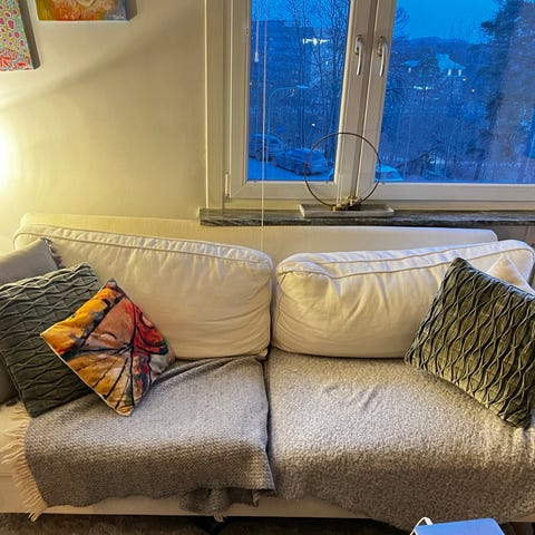 Tresitssoffa i ljus färg säljes. Bekväm och rymlig soffa som passar bra i vardagsrummet!