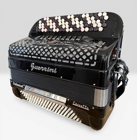 Fyrkörigt (16+8+8+8) Paolo Soprani med äkta musette. Fint franskt ljud! 7+1 register. Servat och stämjusterat. Axelremmar samt väska ingår. Vikt: 10 kg. Fri frakt inom Sverige. Betala med kort, Klarna eller Swish.