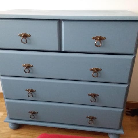 Byrå trä blå med tre lådor