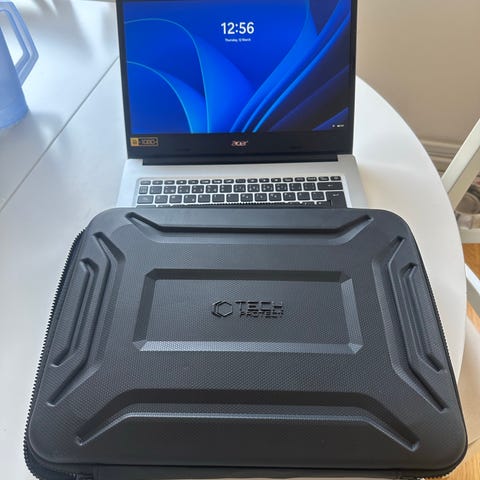 Acer laptop med 14-tums skärm. Datorn har tangentbord i fullstorlek och stor styrplatta. Strömadapter och nätkabel ingår enligt bild. Lämplig för vardagligt bruk som webbsurf, kontorsarbete och studier beroende på installerad hårdvara och programvara. Win 11 installerad, återställd och redo för ny ägare.