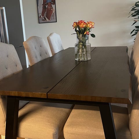 Runt fint matbord i marmor mönster, säljs tillsammans med 4 svarta tillhörande stolar