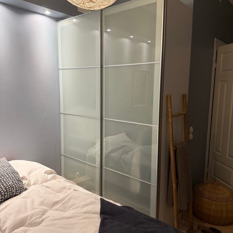 Pax garderob med två vita skjutdörrar 200/236/60cm