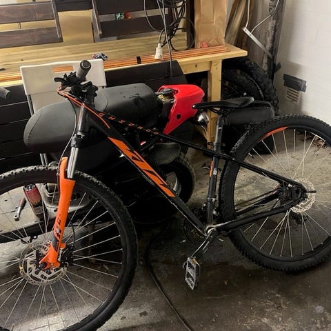 Specialized barncykel med 26" hjul. Cykeln har blå ram, grovmönstrade däck och plattformspedaler från Specialized. Utrustad med fjädrad framgaffel och skivbroms bak. Passar som barn- eller ungdomscykel för vardagscykling och enklare terrängkörning.