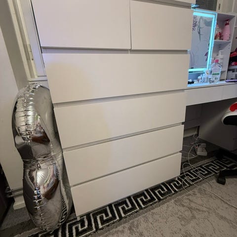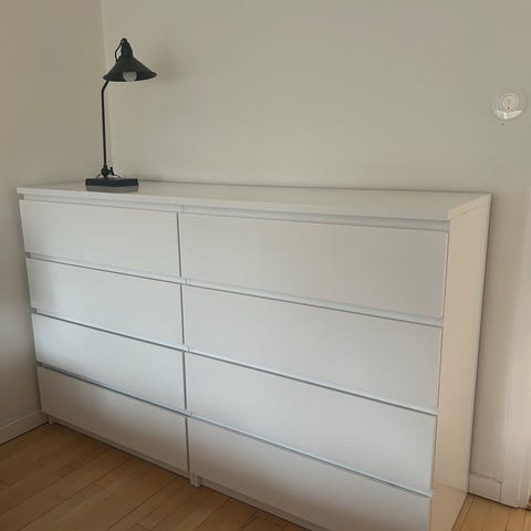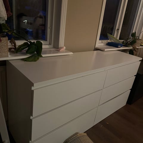 Nu behöver vår fina IKEA Malm byrå(6 lådor) en ny ägare. Använd enbart i ett halvår, den är helt fräsch och i nyskick. Lådorna fungerar utmärkt, inga repor eller skavanker.