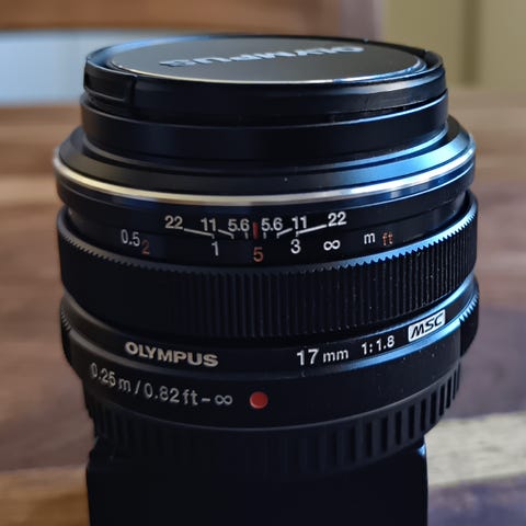 Begagnat objektiv till Olympus OM i fint skick (2). Objektivet levereras med bakre och främre objektivlock.