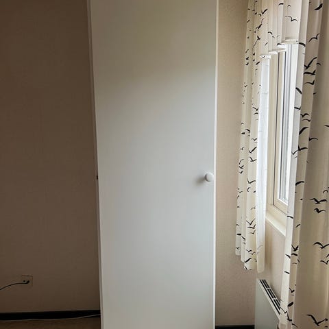 Garderober 2stycken varv det bruna är med hyllor. vitt skåp höjd 200cm och 50cm bred . brunt skåp 180cm och 50cm bred