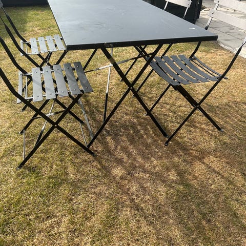 Cafégrupp bord och 4 stolar trä svart metall