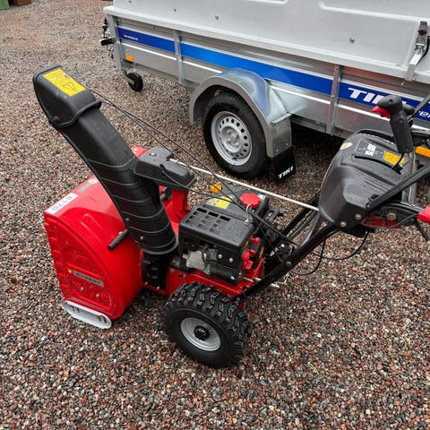 Wolf-Garten Ambition SF 76 E snöslunga i röd färg. Bensindriven tvåstegssnöslunga med grovmönstrade hjul för bättre grepp på snö och is. Utkastarröret är ställbart för riktning av snön. Maskinen är utrustad med skyddskåpa över remmar och reglage samt tydliga säkerhets- och varningsdekaler. Gångtid mindre än 20 timmar, prutat och klart köparen står för frakten.