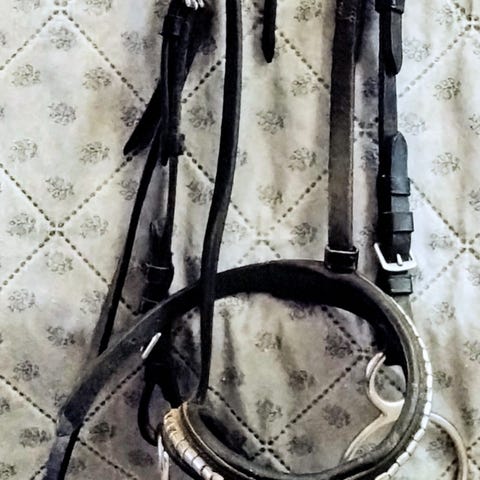 Medföljer även nya bruna flätade tyglar.